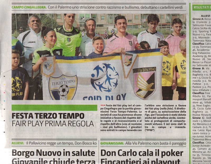 E' stata una bellissima mattinata di sport e di Fair Play, in perfetto stile "Terzo Tempo", i complimenti che continuiamo a ricevere sono tanti, ne siamo orgogliosi e ce li teniamo ben stretti, (anche il Giornale di Sicilia di oggi parla di noi), le sorprese non sono finite, anzi sono appena cominciate, la programmazione per la nuova stagione è già in atto, ci aspettano grandi novità!